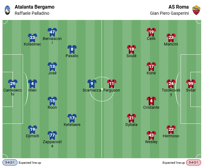 Досега между двата отбора са се състояли общо 140 срещи, като AS Рома води в прякото сравнение с 61 победи. Последната среща обаче беше в ръцете на Аталанта Бергамо. Нерадзурите са непобедени в шест мача от Серия А срещу вълците (пет победи, едно равенство) и спечелиха и последния домакински мач срещу Джиалоросите на 12 май 2025 г. с 2:1. Тогава обаче Джан Пиеро Гасперини все още беше на пейката на Бергамо…