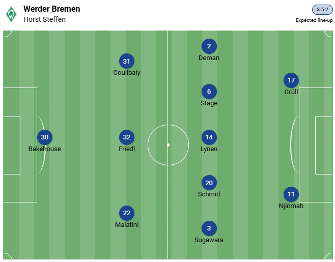 Главният треньор Хорст Стефен се намира в трудна позиция. За да се запази в класацията, три точки в прогнозата за Вердер Бремен срещу Гладбах биха били оптимални, но ситуацията с персонала е депресираща. Особено в ханзейската отбрана се натрупват отсъствията.