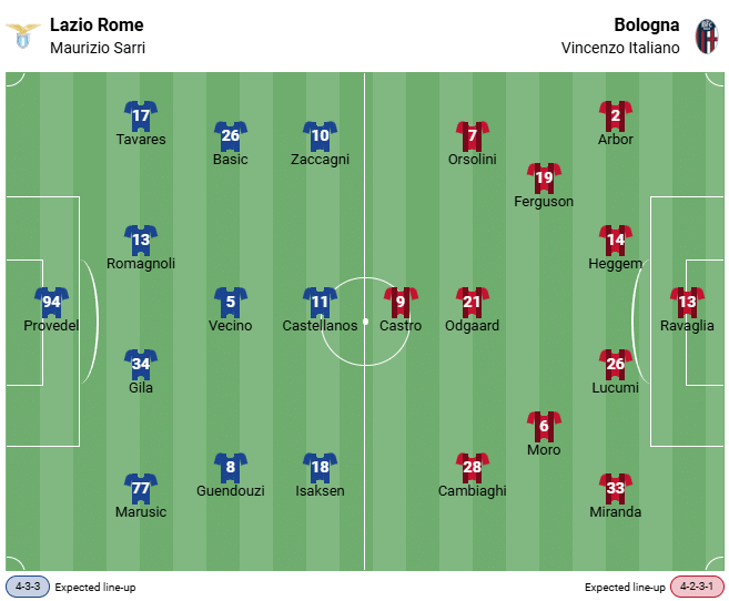 Под ръководството на Маурицио Сари Biancocelesti допуснаха само четири гола в шест домакински мача от Серия А. В четири поредни домакински мача Aquile (на български: орлите) постигнаха победи без допуснат гол. Съответно, при мача между Лацио Рим и Болоня прогнозата е, че столичани ще успеят да неутрализират офанзивата на гостите.
