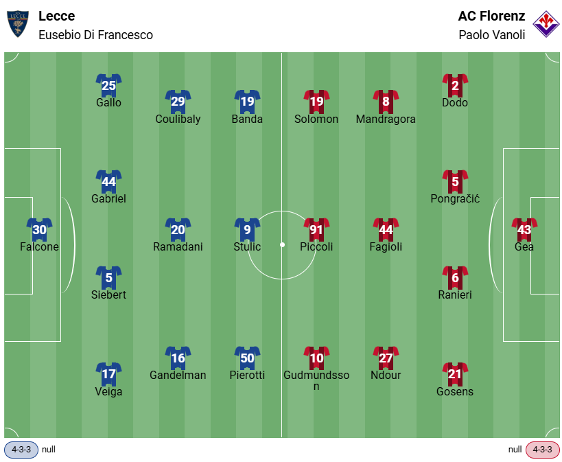 Лече – Фиорентина Директно сравнение / Баланс H2H