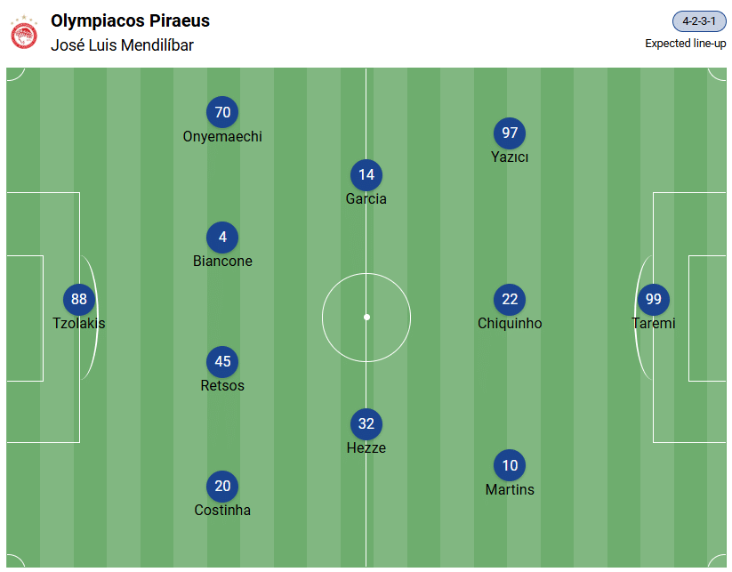 При това домакините претърпяха поражение миналия уикенд, като загубиха четвъртфинала в гръцката купа срещу ПАОК Салоники (0:2). На отбора липсваше, наред с другите, и топ нападателят Аюб Ел Кааби (12 гола през сезона в гръцката лига), който играеше с Мароко във финала на Купата на Африка.
