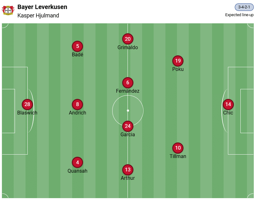 Натоварването в началото на годината е голямо и Леверкузен пътува за Гърция с няколко контузени играчи. Много от тях страдат от мускулни травми, а някои се завърнаха от Купата на Африка с контузии. Поне трима опитни професионалисти са на разположение за централната защита. Очаква се Хюлманд да изгради тричленна отбрана, като Роберт Андрих ще продължи да отсъства поради наказание.