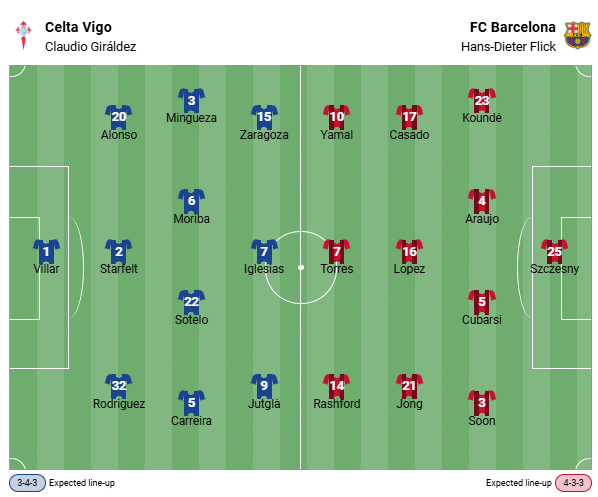 Изненада се очертава, когато Селта Виго посрещне големия ФК Барселона в неделя.