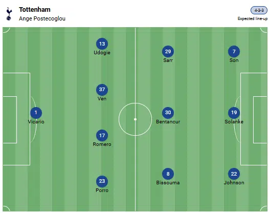 Увереността обаче е малко помрачена от ситуацията с кадровия състав, тъй като Мадисън, Бергвал и Кулусевски със сигурност няма да играят. Също така има голяма несигурност около Папе Сар. Още повече надеждите са насочени към нападателя Доминик Соланке, който в последните си четири мача срещу Юнайтед винаги е отбелязал поне един гол (общо пет гола) и е голмайстор на Тотнъм в Лига Европа с девет точки (пет гола, четири асистенции). За гол на Соланке за Тотнъм срещу Манчестър Юнайтед коефициентът в приложението на Interwetten е 3,65.
