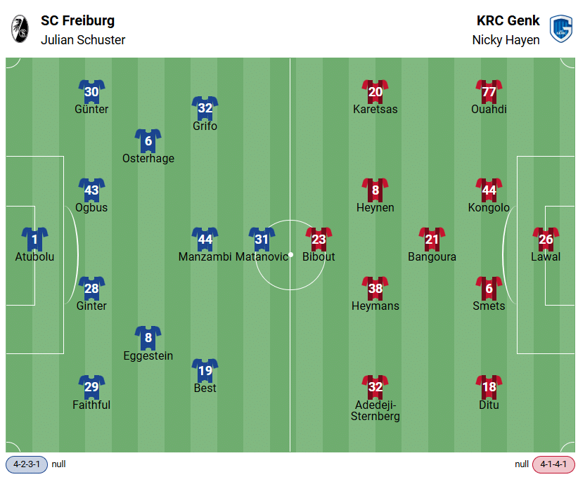 Първият мач от осминафиналите, който завърши с победа 1:0 за отбора от Лимбург, бе първата среща между тези два отбора. За предстоящия мач на стадион „Европа-Парк“ между Фрайбург и Генк коефициентите обаче сочат към домакинска победа.