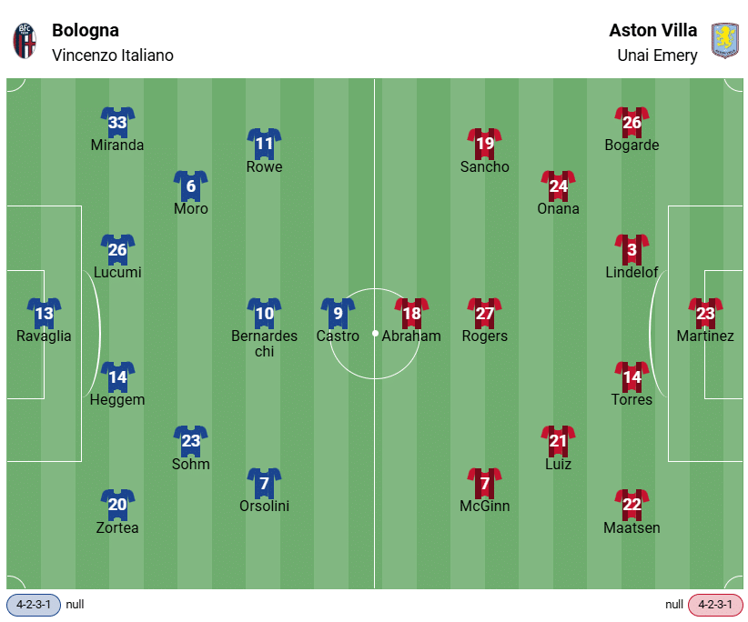 FC Bologna se momentálně nachází ve stabilní evropské fázi a v posledních 15 mezinárodních zápasech utrpěla pouze jednu porážku. K této porážce však došlo právě proti Aston Ville. Celkově je Bologna již jedenáct zápasů neporažena a potvrzuje tak svou stabilní formu na mezinárodní scéně.