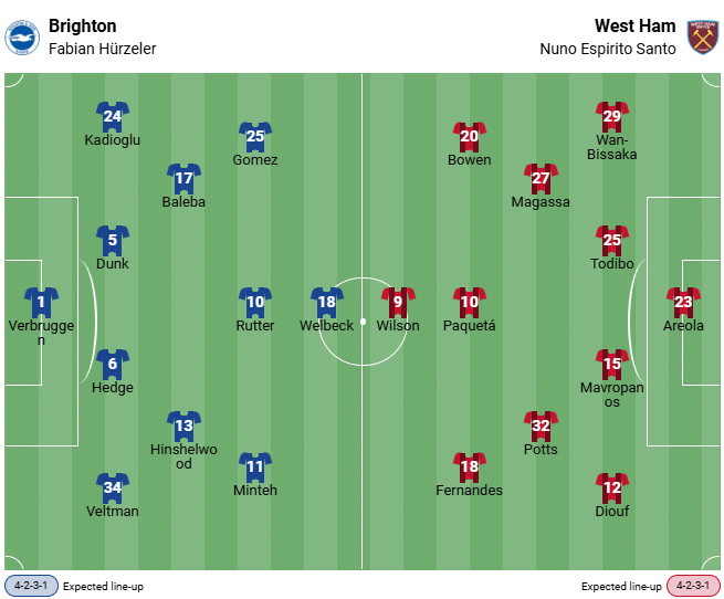 Pokud by však Brighton proti West Hamu dokázal zvítězit na domácím hřišti, mohla by okamžitě začít další série domácích zápasů. Pro to hovoří fakt, že Hammers po remíze 1:1 s Manchesterem United dokonce sklouzli na přímou sestupovou příčku.