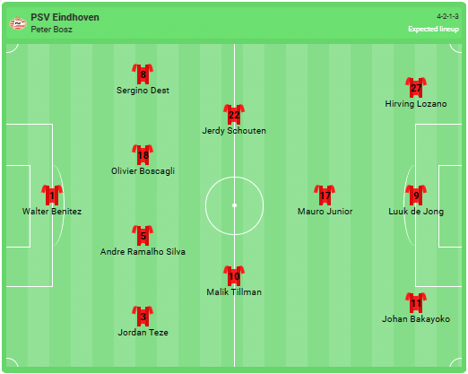 Když už jsme u Matse Hummelse: zkušený obránce se téměř jistě objeví v základní jedenáctce, protože Nico Schlotterbeck bude chybět kvůli suspendaci za žluté karty. Kromě toho může Edin Terzič prakticky čerpat z kompletního kádru. Oproti prvnímu duelu se však mnoho změn neočekává. V úvahu by připadala výměna Brandta za Reuse. To však také znamená, že úřadující vicemistři budou na levé straně obrany opět spoléhat na Jadona Sancha. Třiadvacetiletý hráč vstřelil o víkendu svůj první gól od návratu a je stále lepší a lepší. V Lize mistrů se Sancho v jedenácti domácích zápasech za BVB podílel na osmi gólech. Společně s Malenem a Füllkrugem by měl Sancho dělat obraně PSV problémy.