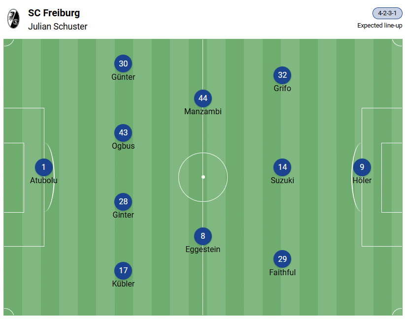 Freiburg zatím vyhrál čtyři z osmi domácích zápasů, další tři skončily remízou. Jelikož jediná domácí porážka byla v prvním zápase sezóny, Freiburg mezitím neprohrál sedm domácích zápasů v řadě. Ve všech soutěžích je to dokonce dvanáct domácích zápasů.