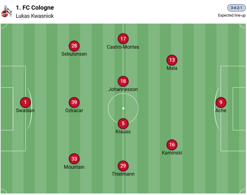Po osmi zápasech bez vítězství získal Kolín minulý víkend konečně tři body. Proti hostům z Mohuče zvítězili 2:1 a získali tak důležité body. V neděli to bude těžké, protože Kolín musí být považován za slabšího soupeře na hřišti soupeře.