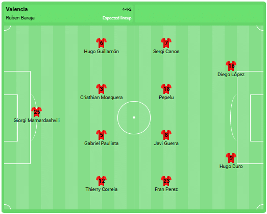 Předpokládaná sestava Valencie: