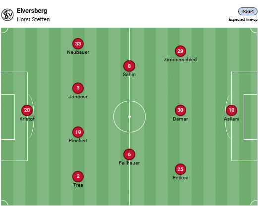 Nově proměněný tým ze Sárska těží také z velké stability na trenérské lavičce. Horst Steffen převzal tým v říjnu 2018 v Regionallize a během několika let ho dovedl do 2. Bundesligy. Ve svých 56 letech je druhým nejdéle sloužícím trenérem v německém profesionálním fotbale – hned za Frankem Schmidtem z Heidenheimu. Statistiky však nedávají moc naděje, že v zápase Heidenheimu proti Elversbergu vyjde tip na výhru černobílých na hřišti soupeře. V posledních 25 zápasech o sestup druholigoví hráči vyhráli pouze třikrát – všechny venku a všechny nakonec bezvýznamné.