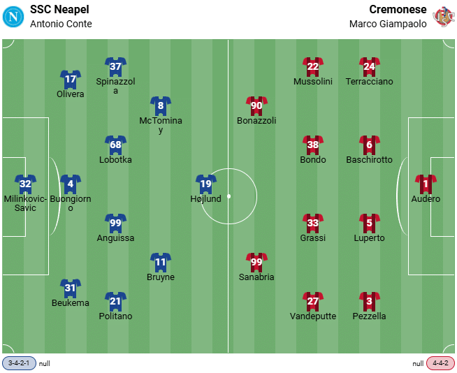 V pátek zahájí SSC Neapol a US Cremonese 34. kolo nejvyšší italské ligy. Na první pohled se zdá, že role jsou jasně rozděleny, protože zatímco domácí bojují o účast v Lize mistrů, hosté se nacházejí uprostřed boje o záchranu. Přesněji řečeno, hostující tým se nachází mimo sestupové příčky pouze díky skóre -21.