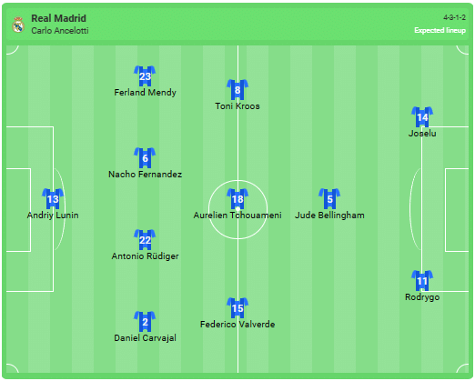 Jelikož má Real Madrid společně s Barcelonou nejvíce zahraničních hráčů v La Lize, bude zajímavé sledovat, jak si lídři ligy povedou v prvním zápase po mezinárodních zápasech. Pozitivní je, že alespoň Jihoameričané nemuseli cestovat na velké vzdálenosti: například Brazilci Vinicius Jr. a Rodrygo odehráli svůj mezinárodní zápas s Brazílií proti Španělsku na madridském Bernabeu, zatímco Valverde hrál s Uruguayí na San Mames v Bilbau proti Baskům (trenér Marcelo Bielsa) a v Lens proti Pobřeží slonoviny a němečtí legionáři Kroos a Rüdiger byli v akci hlavně v Německu.