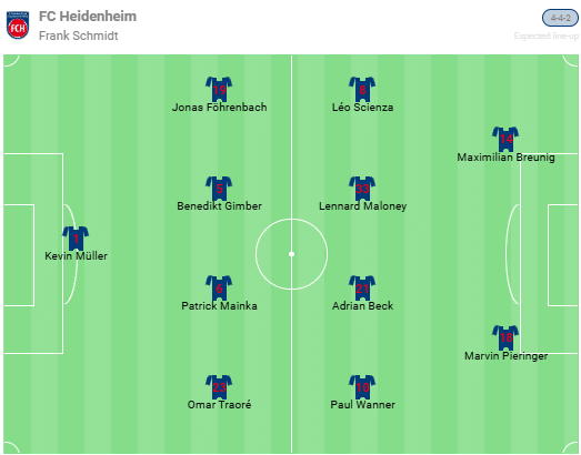 Předpokládaná sestava Heidenheimu: