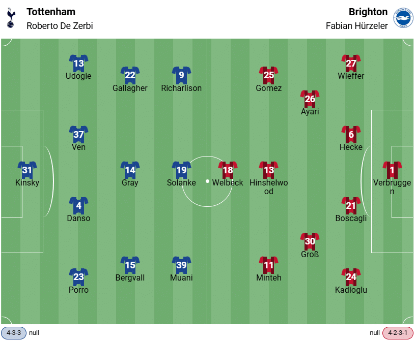 Celkem se mezi oběma týmy odehrálo dosud 42 soutěžních zápasů a polovinu z nich, tedy 21 vítězství, si připsal Tottenham. V současné době však Spurs čekají na vítězství nad Brightonem v Premier League již tři zápasy (jedna remíza, dvě porážky).