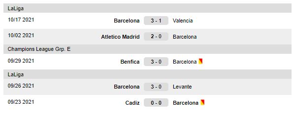Sidste kampe spillet af Barcelona: