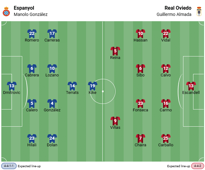 Espanyol Barcelona – Oviedo Direkte sammenligning / H2H-balance