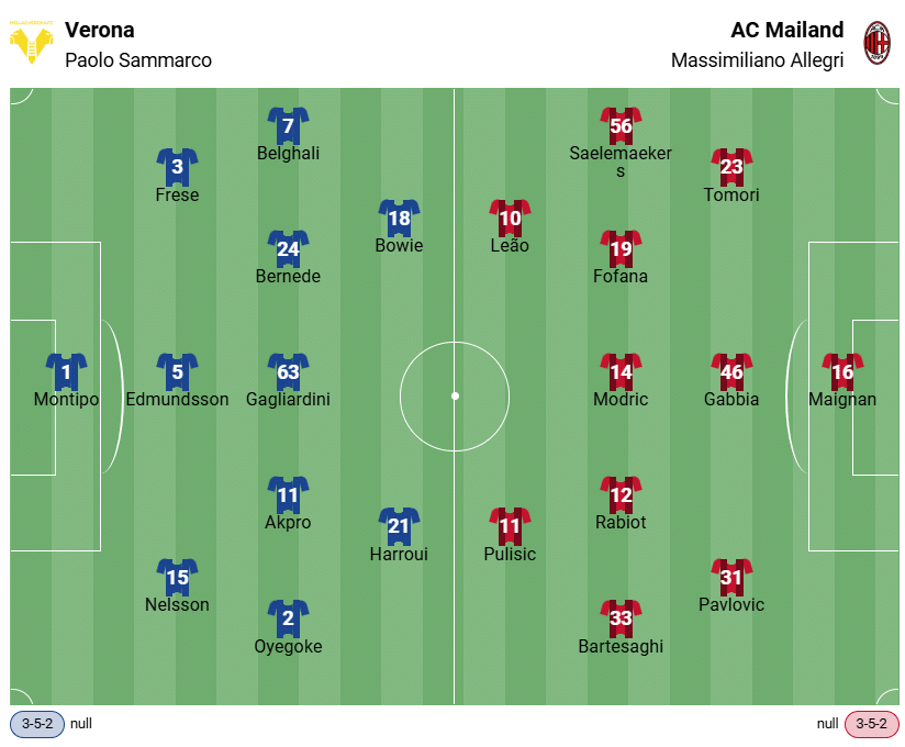 Hellas Verona – AC Milan Direkte sammenligning / H2H-statistik