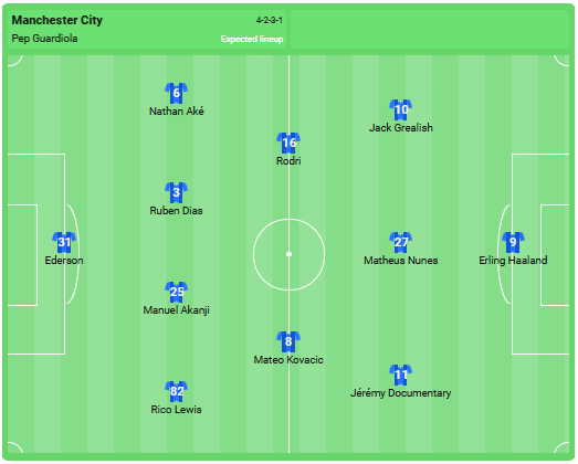 Manchester Citys forventede startopstilling: