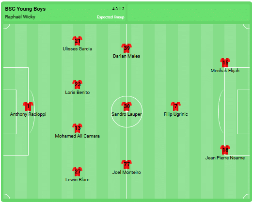 Forventet startopstilling for Young Boys: