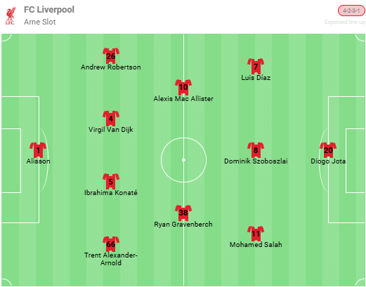 Erik ten Hags hold ser stadig for harmløst ud, især i angrebet. Det krævede det førnævnte mål i sidste minut fra indskiftede Joshua Zirkzee mod Fulham, og de formåede kun at score ét mål selv mod Fabian Hürzelers Brighton. Nederlag i forberedelserne mod Arsenal (1:2) eller Liverpool FC (0:3) tegnede et meget lignende billede. Vi forventer ikke, at De Røde Djævle scorer mere end ét mål på søndag, selv ikke mod The Reds’ forsvar, som har været solidt indtil videre.