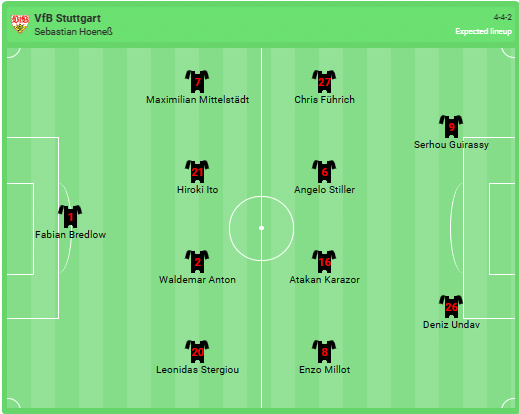 Der er også spørgsmålstegn ved nogle af stjernernes fremtidsplaner. Guirassy bliver jævnligt sat i forbindelse med mere lukrative topklubber, Führich og Anton er lige så eftertragtede, og af økonomiske årsager er der i øjeblikket kun en lille chance for, at Deniz Undav bliver i Bad Cannstatt efter sommerferien. Minimumskravet ville være en succesfuld kvalifikation til den bedste række