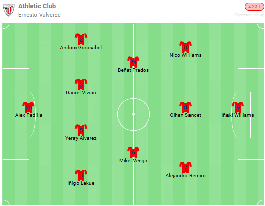 Η πιθανή ενδεκάδα της Αθλέτικ Μπιλμπάο:
