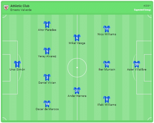 Προβλεπόμενη ενδεκάδα της Αθλέτικ Μπιλμπάο: