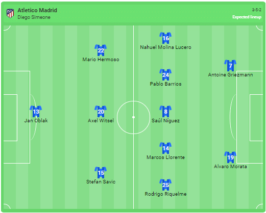 Προβλεπόμενη σύνθεση της Ατλέτικο Μαδρίτης: