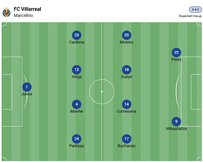 Η ομάδα του προπονητή Marcelino έχει μόνο έναν βαθμό στο ενεργητικό της, παρόλο που τα πάει πολύ καλά στο εθνικό πρωτάθλημα και ακολουθεί από κοντά τη Μπαρτσελόνα και τη Ρεάλ Μαδρίτης. Την Τετάρτη, όμως, θα αντιμετωπίσει τους φιλοξενούμενους, οι οποίοι πρόσφατα κατάφεραν να πάρουν την πρώτη τους νίκη. Αυτή είναι η ευκαιρία για τη Βιγιαρεάλ να πάρει τρεις βαθμούς.