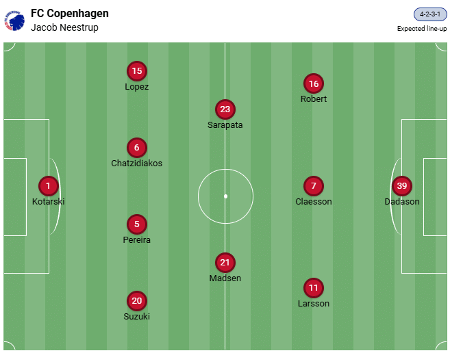 Τα 7,3 γκολ ήταν η τιμή των αναμενόμενων γκολ για τα μέχρι τώρα παιχνίδια και η Κοπεγχάγη κατάφερε να σκοράρει επτά γκολ. Έτσι, η ομάδα παίζει σχεδόν ακριβώς όπως είχε προβλεφθεί.