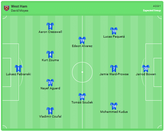 Προβλεπόμενη σύνθεση της Γουέστ Χαμ: