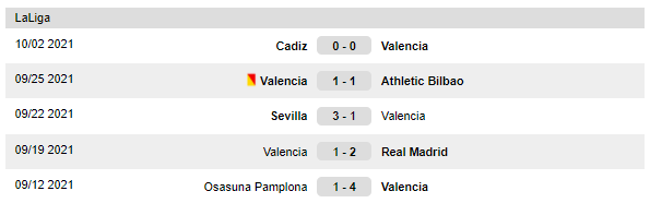 Τελευταίοι αγώνες που έδωσε η Valencia: