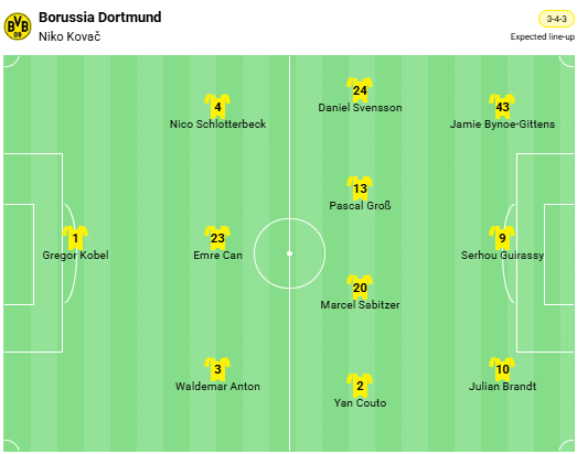 Προβλεπόμενη σύνθεση της Ντόρτμουντ: