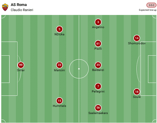 Οι τρεις φορές πρωταθλητές Ιταλίας έχουν επίσης επανενεργοποιήσει την εντός έδρας φόρμα τους. Η AS είναι αήττητη σε επτά παιχνίδια πρωταθλήματος στην έδρα της (6-1-0)! Ιδιαίτερα η επίθεση βρίσκεται σε θερμοκρασία λειτουργίας στο γήπεδό της με εννέα γκολ στα τρία τελευταία εντός έδρας παιχνίδια