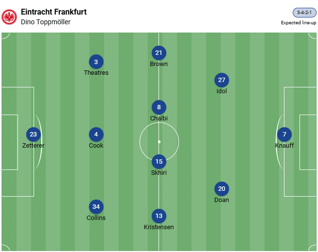 Ωστόσο, η επίθεση διαθέτει μεγάλο βάθος: Η ομάδα του Toppmöller έχει ήδη δώδεκα διαφορετικούς σκόρερ και με 28 γκολ στη σεζόν βρίσκεται στη δεύτερη θέση της βαθμολογίας της λίγκας, πίσω από τη Μπάγερν. Το μειονέκτημα είναι η ευπάθεια στην αρχική φάση, που κάνει το παιχνίδι να γυρίζει νωρίς εναντίον της SGE. Έχουν ήδη δεχτεί έξι γκολ στα πρώτα 15 λεπτά – το υψηλότερο ποσοστό στη λίγκα μαζί με τη Μάιντς.