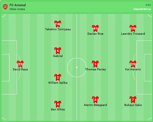 Alineación prevista del Arsenal: