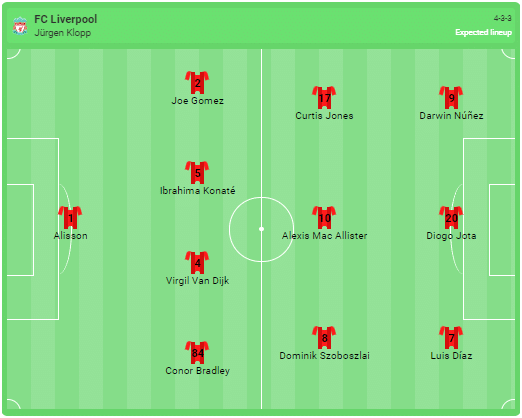 En cuanto al personal, también hay noticias casi exclusivamente positivas. Alexander-Arnold y Robertson se recuperaron de sus lesiones durante la semana. Szoboszlai también tuvo un regreso impresionante con un gol de cabeza. Sólo la ausencia de Mohamed Salah sigue doliendo, aunque Núñez, Díaz y Jota armonizan perfectamente entre sí y casi suplen la ausencia del egipcio.