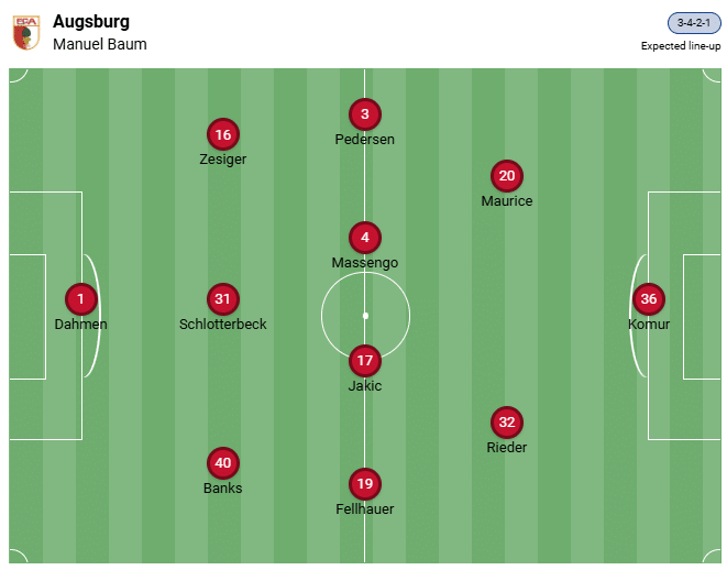 Sin embargo, bajo la dirección del nuevo entrenador Manuel Baum, se aprecia una clara estabilización defensiva. En los tres partidos de la Bundesliga desde su llegada, el FCA solo ha encajado un gol, el mejor registro de la liga en este periodo junto con el Borussia Dortmund. Dos de estos tres partidos terminaron incluso sin encajar ningún gol, el doble de partidos sin encajar goles que en las primeras doce jornadas juntas. Además, el Augsburgo solo permitió seis tiros a puerta del rival en estos partidos, una cifra solo superada por el FC Bayern de Múnich.