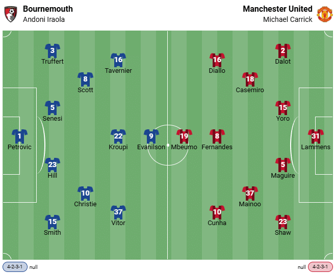 Kotijoukkue Bournemouth puolestaan on tällä hetkellä erittäin vakaa ja on ollut kymmenen Premier League -ottelua tappioton. Kuudessa viimeisestä seitsemästä ottelusta on syntynyt alle kolme maalia – kolmessa viimeisestä neljästä ottelusta tulos on ollut jopa 0–0. He ovat viime aikoina esiintyneet vahvasti Manchesterin vieraita vastaan ja ovat olleet viisi Premier League -ottelua tappiottomia heitä vastaan.