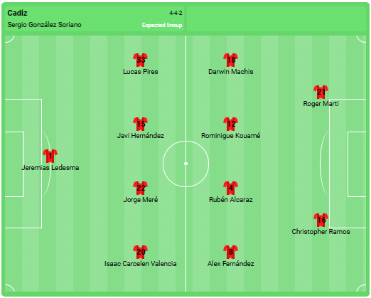 WL Cadizin valmentaja Sergio pelaa Pepe Bordallasin tavoin hyvin puolustavaa ja häiritsevää jalkapalloa. Joukkue on tietoinen ominaisuuksistaan, eivätkä pitkät hallintajaksot todellakaan kuulu keltasinisten vahvuuksiin. Siksi joukkue toimii odottavalla otteella ja luo vain satunnaisesti aukkoja hyökkäyspeliin. Tällä viikolla Cadiz voitti Copa del Reyn 4-2 ja on tehnyt Sergion johdolla jo 71 maalia 71 kilpailullisessa ottelussa.