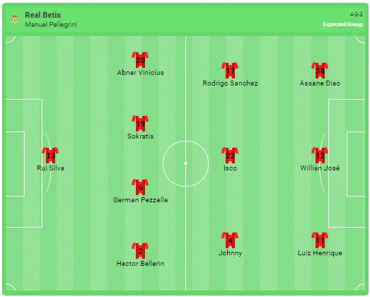 Predicted line-up of Betis Sevilla: