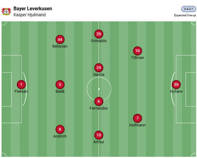 Mark Flekken voi vartioida maalia, mutta edessä puuttuvat pelikiellossa oleva Jarell Quansah ja Afrikan mestaruuskisoihin lähetetty Edmond Tapsoba kolmen puolustajan ketjusta. Kapteeni Robert Andrich siirtynee siten keskuspuolustajan roolista oikean puolustajan paikalle. Loic Bade ja Jeanuel Belocian liittyvät todennäköisesti hänen seuraansa.