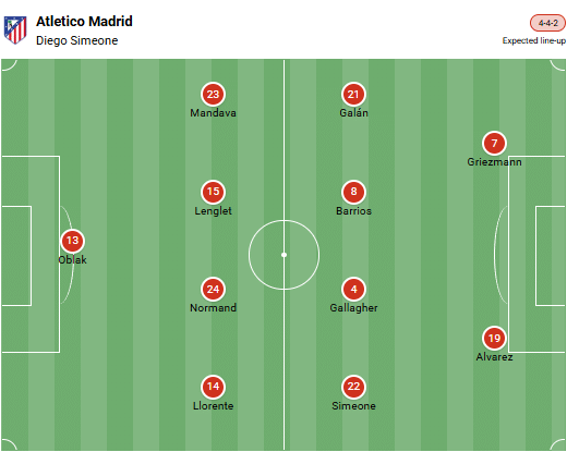 Lisäksi pääkaupunkilaiset ovat vastustajiaan väsyneempiä, sillä he ovat jo pelanneet tällä viikolla Barcelonaa vastaan Copa del Reyssä