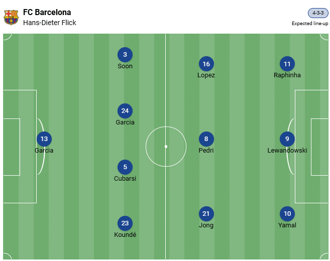 La bonne forme actuelle du champion d’Espagne en titre joue en tout cas en sa faveur. Au niveau national, le FCB a récemment remporté six victoires consécutives, se hissant ainsi à nouveau en tête du classement de la Liga. Toutes compétitions confondues, Lamine Yamal, Robert Lewandowski et leurs coéquipiers ont réussi à marquer au moins trois buts lors de huit des dix derniers matchs officiels. Grâce à sa victoire 5-3 ce week-end contre le Betis Séville, l’équipe de Flick a souligné son excellente qualité offensive.