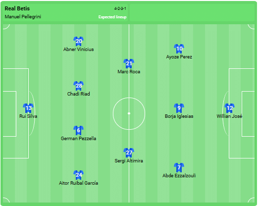 L’équipe du Betis Séville devrait être alignée :