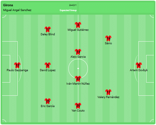 Formation prévue de Gérone: