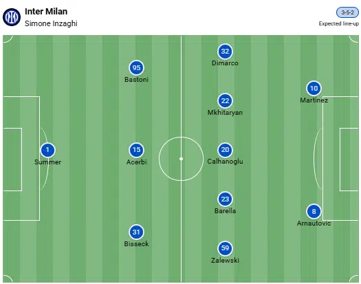 Selon les pronostics IA pour le match Bologne – Inter Milan, il y a clairement une valeur à miser sur la victoire des visiteurs. BETSiE estime les chances de victoire des Nerazzurri à huit points de pourcentage de plus que les bookmakers.