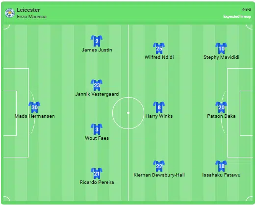 La composition prévue de Leicester: